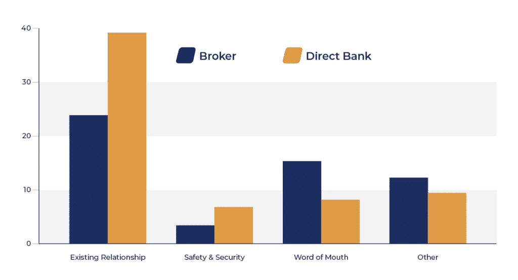 Figure 2: Existing Relationships Appear Highly Important for Direct Bank Mortgage Borrowers While Word of Mouth Is Relatively More of a Deciding Factor in the Broker Channel